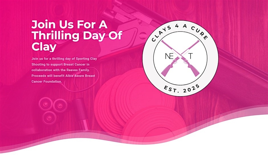 Join us for a thrilling day of Sporting Clay Shooting to support Breast Cancer in collaboration with the Reeves Family. Proceeds will benefit Albie Aware Breast Cancer Foundation.